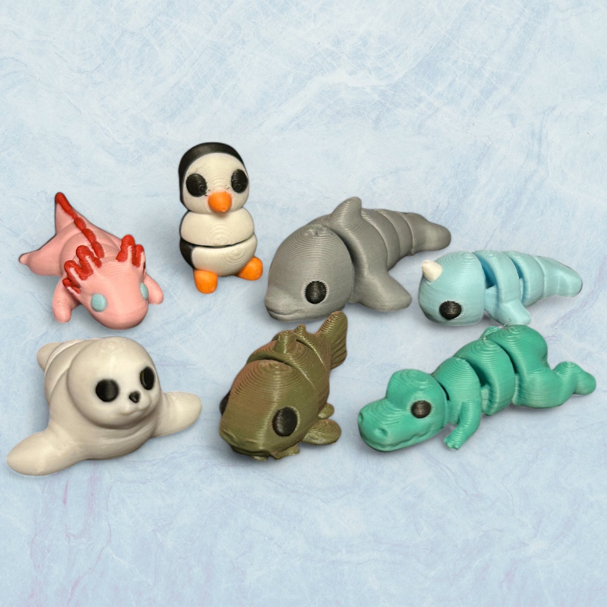 Axolotl, Penguin, Dolphin, Narwhal, Seal, Catches and Alligator